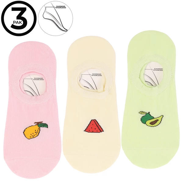 Damskie skarpetki stopki bawełniane z owocowym wzorem to połączenie wygody i subtelnego stylu. Ten 3-pak niskich skarpetek to idealny wybór na ciepłe dni, cienkie, przewiewne i niezwykle komfortowe, świetnie sprawdzą się do sneakersów, mokasynów czy balerinek. Każda para posiada delikatną grafikę owocową, która dodaje im wyjątkowego charakteru.