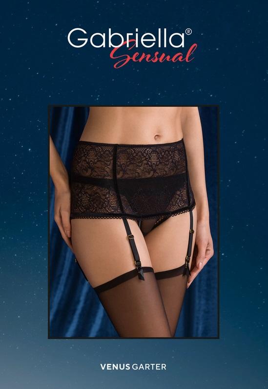 Koronkowy pas do pończoch z ozdobnymi tasiemkami w kroku spodoba się odważnym, a za razem zwracającym uwagę na subtelne detale, paniom. Ażurowa, bogato zdobiona, kwiatowa koronka otula brzuch i biodra pięknie prezentując się na skórze. Design nawiązujący do wiodących trendów w projektowaniu bielizny podkreśla i zaokrągla pośladki. Dwie trzyrzędowe haftki na górze zapewniają optymalną regulację i dopasowanie do kobiecych kształtów. Metalowe elementy służące do regulacji długości taśm w kolorze klasycznego złota nasuwają skojarzenia nie tylko z ekskluzywną bielizną, ale i z luksusową biżuterią.