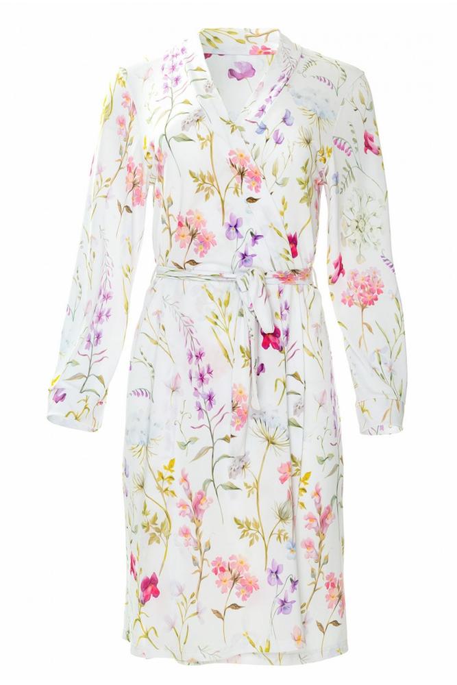Peniuar w kwiaty Flores. Peniuar w kwiaty Flores to NOWOŚĆ z kolekcji MEWA lingerie. Flores uczyni każdy Twój poranek pełnym wdzięku i kolorów. Peniuar został stworzony z myślą o naszych klientkach, które znają i cenią sobie nie tylko walory estetyczne, ale także użytkowe naszego unikatowego materiału. Flores to produkt dla kobiet ceniących najwyższą jakość i dokładność wykonania. Szlafrok z jedwabiu wiskozowego, wykonany został z naturalnego materiału jakim jest jedwab wiskozowy VISTEX. Spółka Mewa jest jedynym producentem tego materiału w Polsce i na Świecie. Dzianina Vistex posiada całą gamę unikatowych cech takich jak: termoaktywność, antybakteryjność, antyalergiczność, higroskopijność. Szlafrok posiada wygodny krój z taliowaniem w pasie oraz długi pasek do zawiązywania i regulowania szerokości. Rękawy wykończone zostały mankietem. Dekolt peniuary wykończony jest ok 4 cm listwą. Peniuar Flores został wyprodukowany w Polsce z dbałością o każdy detal. Produkt zapakowany jest w kartonowe pudełeczko, dzięki czemu świetnie nadaje się na prezent dla bliskiej osoby. Zalety peniuaru Flores: wykonany w Polsce z naturalnego materiału, posiada oryginalny, kwiecisty wzór, jest termoaktywny i antybakteryjny, pięknie opływa ciało, jest lekki i zwiewny.