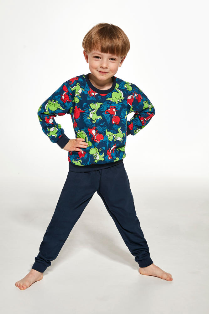 Piżama chłopięca uszyta z wysokiej jakości miękkiej bawełny. Koszulka z długim rękawem, przód ozdobiony kolorowym nadrukiem. Do kompletu jednolite długie spodnie. Dekolt, mankiety oraz dół koszulki z nogawki zakończone wygodnym ściągaczem. Piżamka pakowana w pudełko.