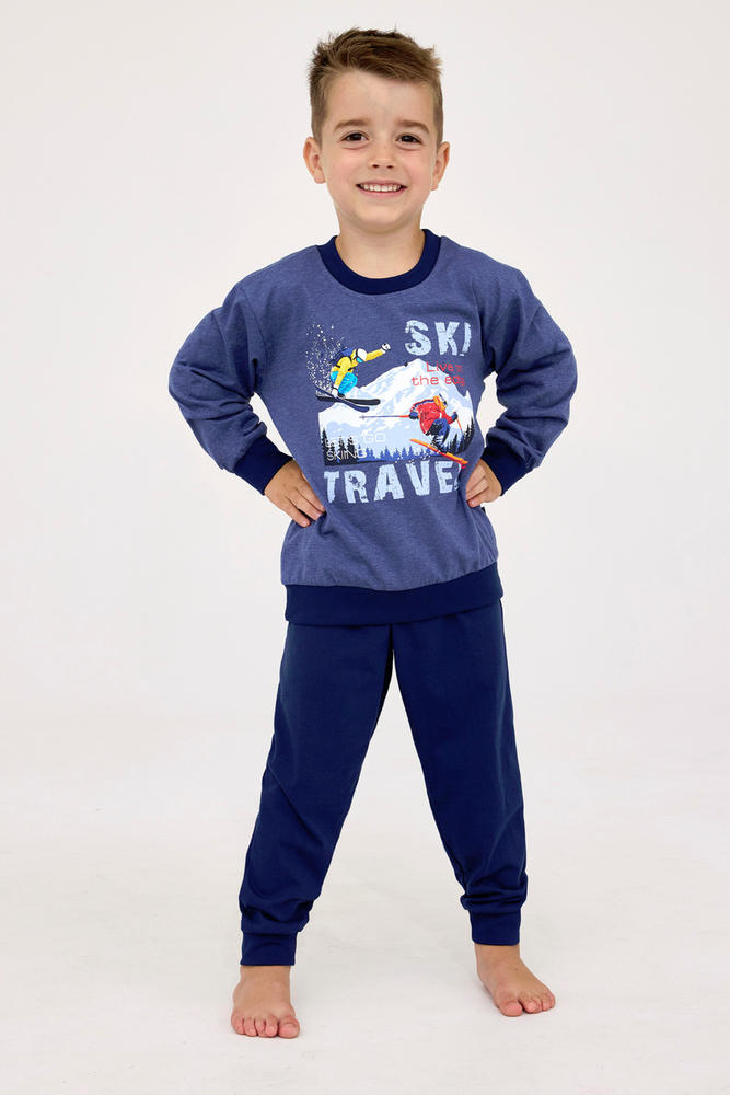 Piżama chłopięca uszyta z wysokiej jakości miękkiej bawełny. Koszulka z długim rękawem, przód ozdobiony kolorowym nadrukiem. Do kompletu jednolite długie spodnie. Dekolt, mankiety oraz dół koszulki z nogawki zakończone wygodnym ściągaczem. Piżamka pakowana w pudełko.