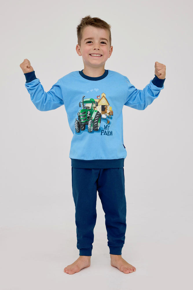 Piżama chłopięca uszyta z wysokiej jakości miękkiej bawełny. Koszulka z długim rękawem, przód ozdobiony kolorowym nadrukiem. Do kompletu jednolite długie spodnie. Dekolt, mankiety oraz dół koszulki z nogawki zakończone wygodnym ściągaczem. Piżamka pakowana w pudełko.