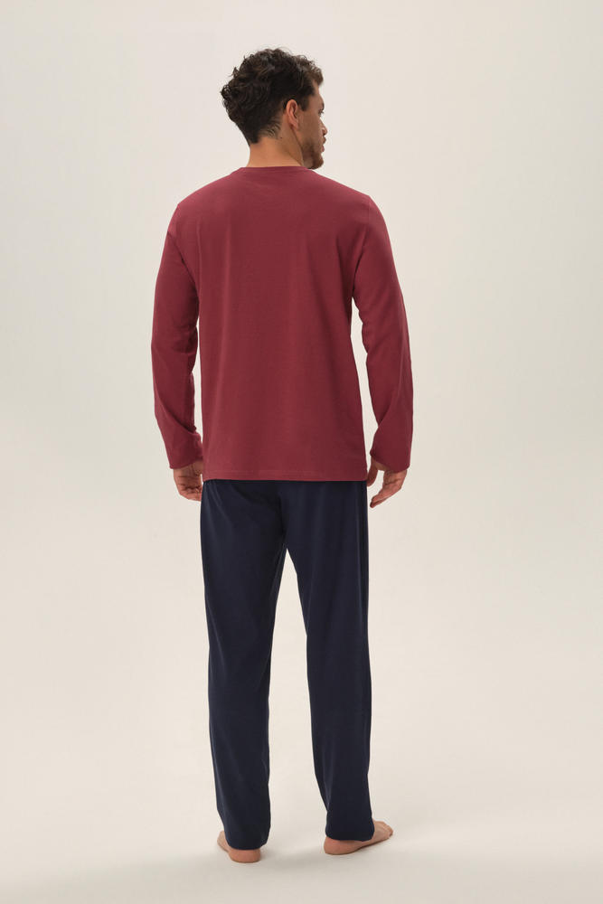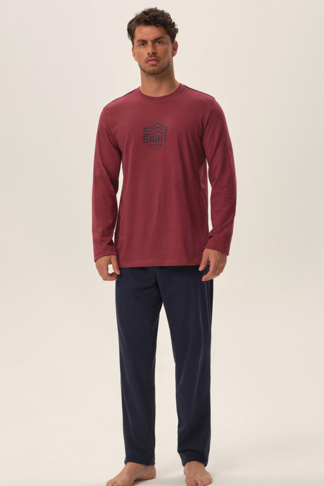 Piżama męska wykonana z wysokiej jakości bawełny. Koszulka z długim rękawem, z przodu nadruk. Spodnie długie, jednolite,