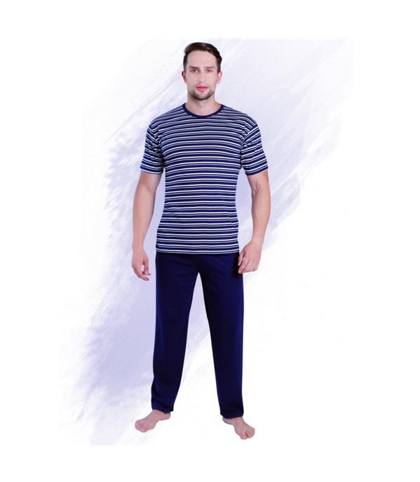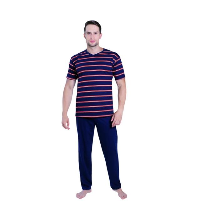 Piżama męska z krótkim rękawem i długimi spodniami. Bawełniana, niezwykle wygodna. Koszulka w modne paski, dół gładki.