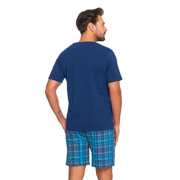 PIŻAMA MĘSKA Z KRÓTKIM RĘKAWEM I SZORTAMI W KRATĘ PDM3300-007 S/S2025