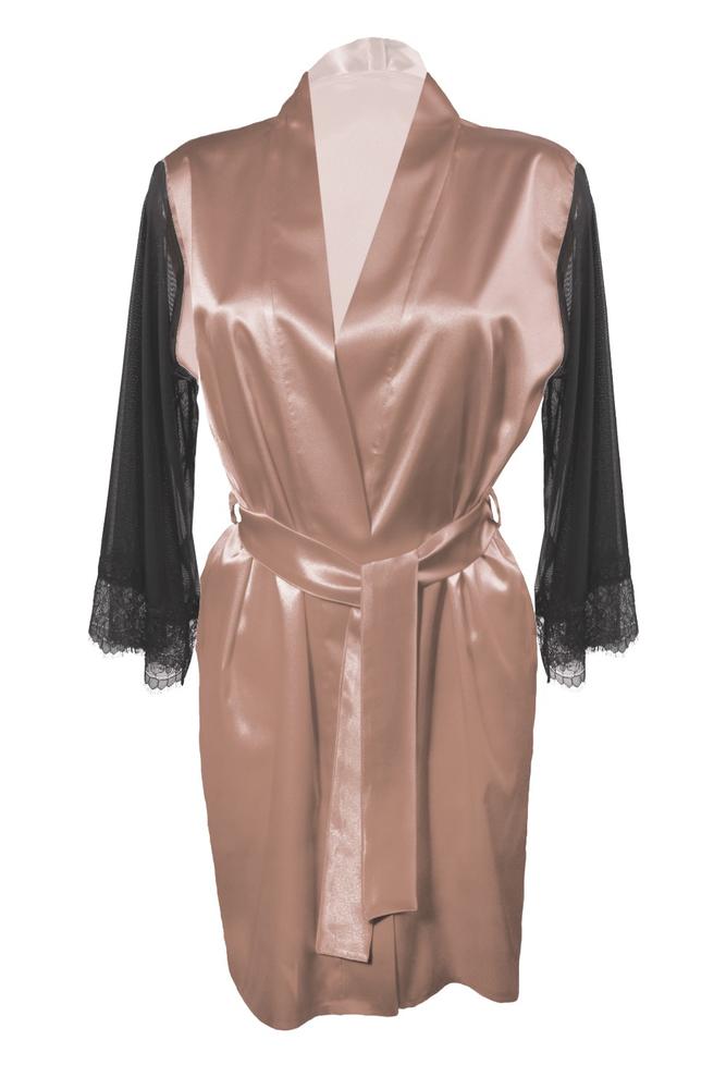 Podomka Bonnie z pewnością zagwarantuje Tobie i Twojemu ukochanemu niezwykłe przeżycia. Kusząca i zmysłowa podomka wykonana z delikatnej satyny pobudzi Wasze zmysły. Szlafroczek uszyty jest według klasycznego wzoru - sięga do połowy ud oraz posiada długie, szerokie rękawy, które zakończone są niemal przezroczystą koronką. Do podomki dołączony jest pasek, dzięki któremu każda kobieta może podkreślić swoją talię. Podomka Bonnie dostępna jest w kilkunastu różnych wariantach kolorystycznych. Przy każdym z nich, rękawki oraz koronka są w czarnym kolorze. Wyjątek stanowi tylko podomka w kolorze białym.