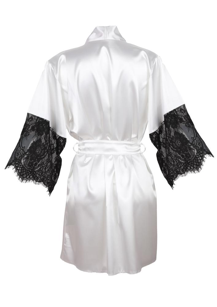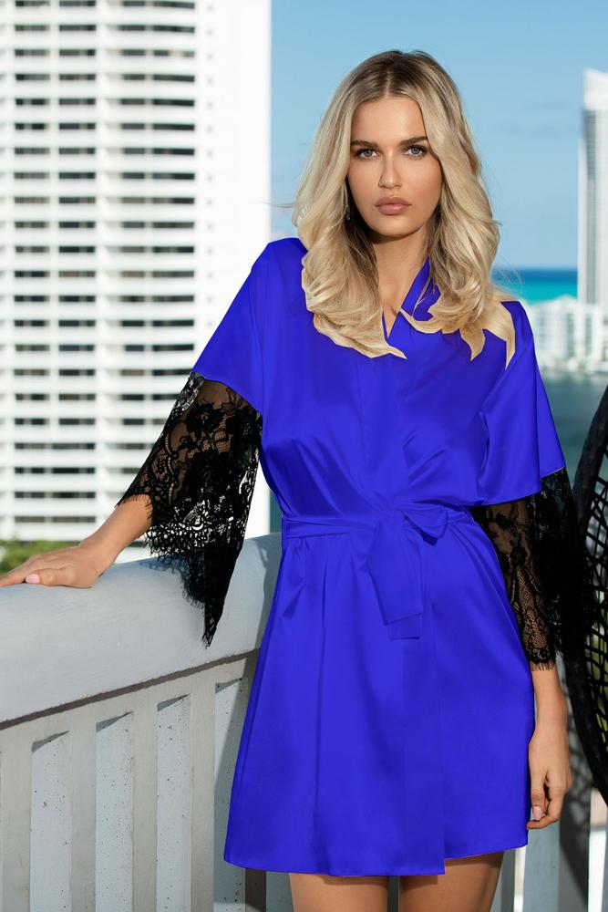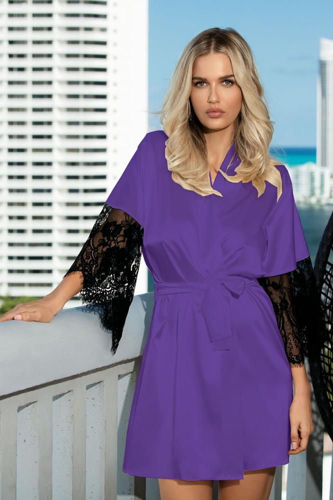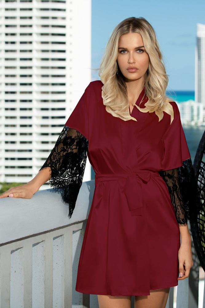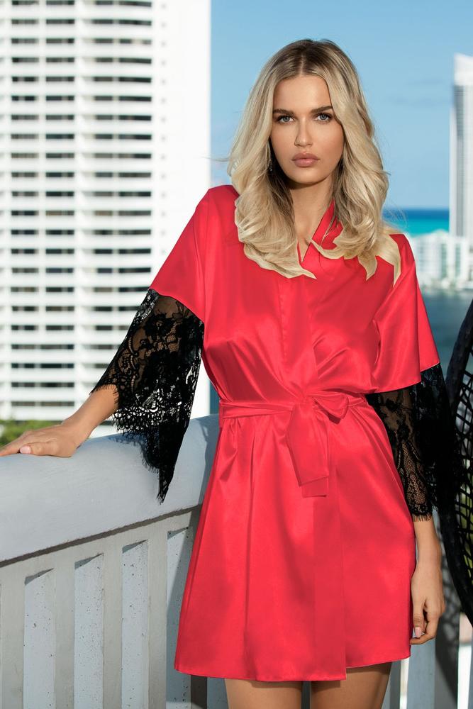 Szukasz podomki innej niż wszystkie? Co powiesz na podomkę Dagmarę, która zaskoczyła swoją oryginalnością już niejedną kobietę. Szlafroczek wykonany jest z przyjemnej w noszeniu, jak i dotyku satyny, a jej szerokie rękawy uszyte są ze zwiewnej, wzorzystej koronki. Podomka sięga do połowy ud. Dołączony jest do niej pasek, dzięki któremu każda kobieta może podkreślić swoją talię oraz uwydatnić swoje atuty. Podomka Dagmara dostępna jest w kilkunastu wersjach kolorystycznych. Przy każdej z nich, koronka jest w kolorze czarnym.