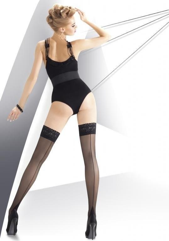 Wyjątkowo kobiece, ekskluzywne i cienkie pończochy ze szwem z tyłu. Posiadają ozdobną koronkę z silikonem. Posiadają wzmocnioną piętę. Pończochy bardzo zmysłowe i seksowne. Idealnie pasują na randkę lub wieczór. W połączeniu ze szpilkami sprawią, że wszystkie spojrzenia będą na Twoich nogach.