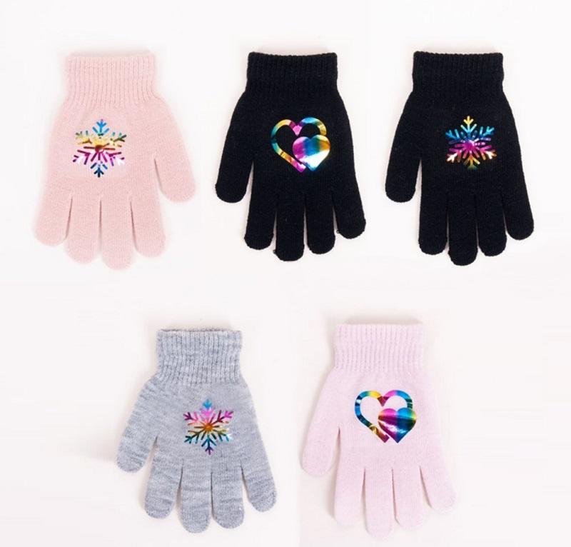 Rękawiczki dziewczęce akryl z nadrukiem holograficznym R-068A.
