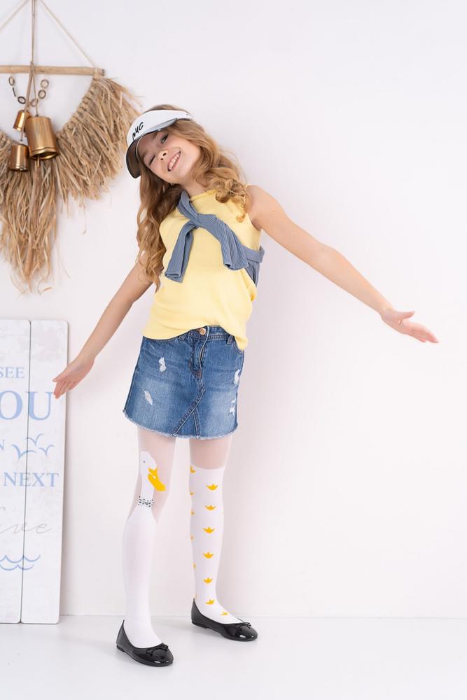 Wzorzyste rajstopy dziewczęce wykonane z przędzy oplatanej z doszytą kokardką. Wykonane w systemie 3D, dzięki któremu są bardziej elastyczne i miłe w dotyku. Wszyty klin.