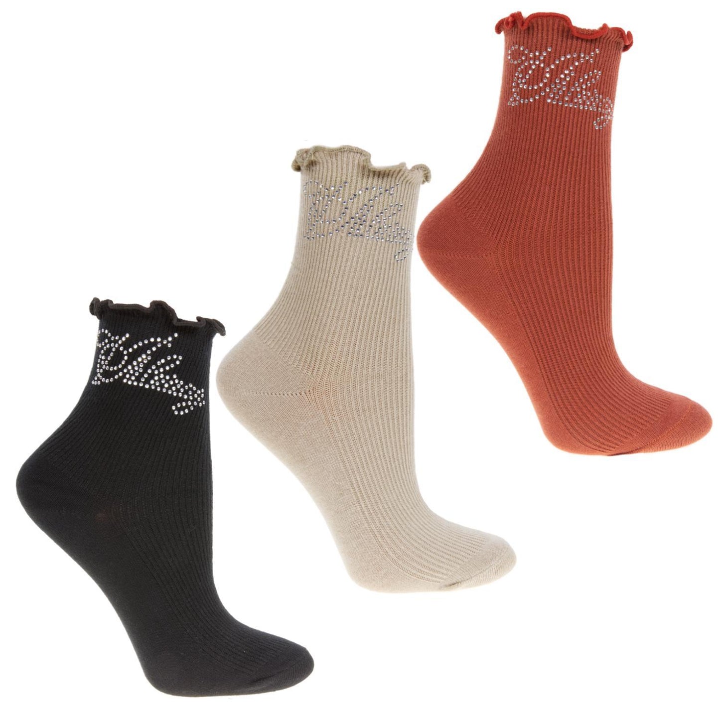 Bardzo ładne skarpetki damskie z ozdobnym napisem, cena za opakowanie 3 pary widoczne na zdjęciu, w paczce mix kolorów oraz zakup hurtowy 12 pak w mixie kolorów.