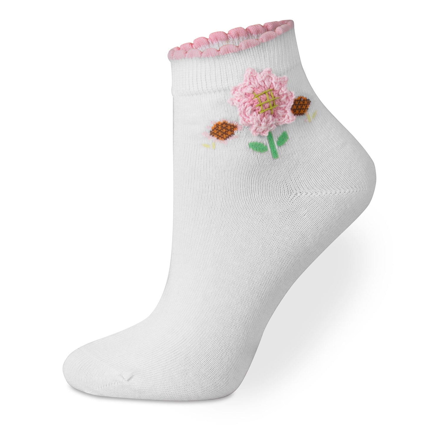 Eleganckie skarpetki dziewczęce z ręcznie robioną aplikacją, zapewniają wysoki komfort noszenia dzięki dużej ilości bawełny.