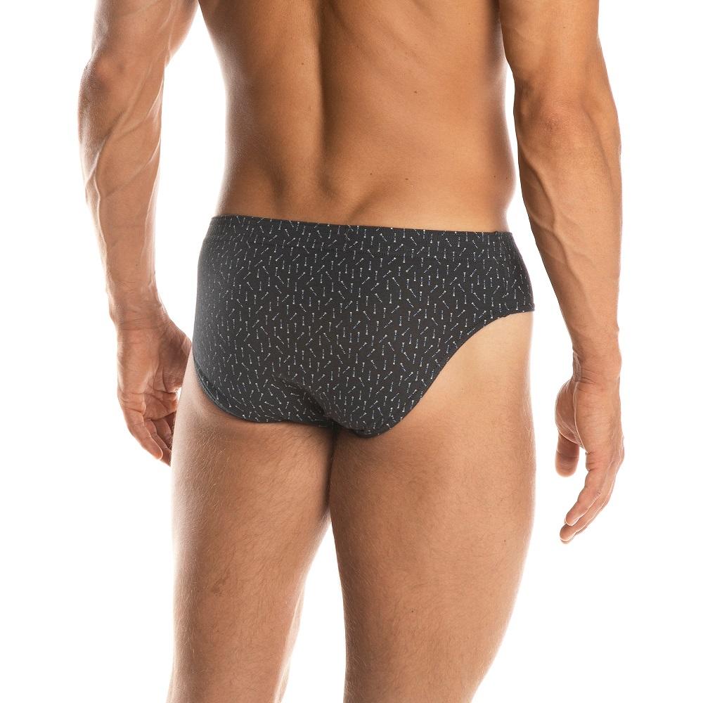 Klasyczne slipy męskie wykonane z wzorzystej bawełny model zabudowany, o szerszym boku, wykończone gumą w tunelu.