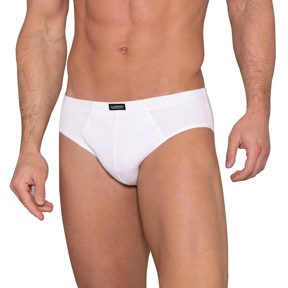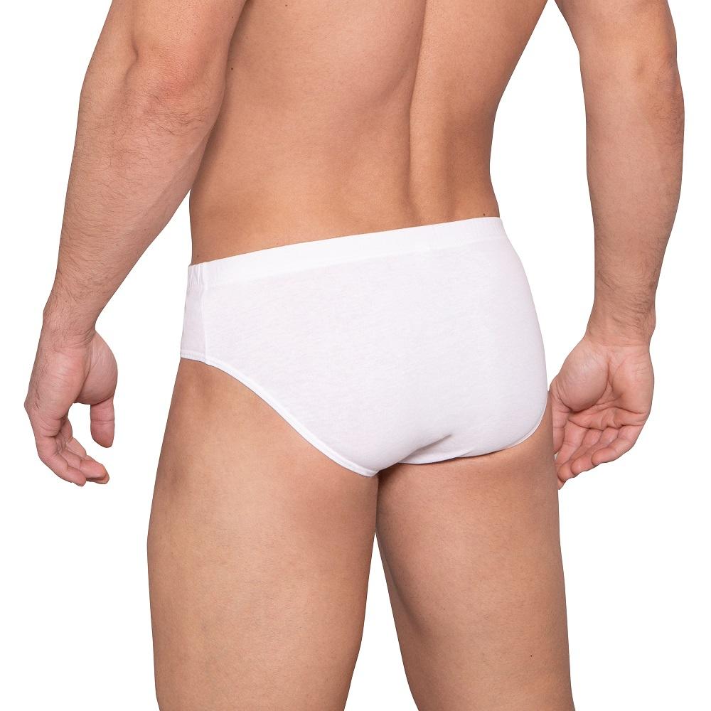 Klasyczne slipy męskie z naturalnej bawełny, dwie sztuki w białym kolorze. Krój zabudowany, o szerszym boku. W pasie nieuciskająca gumą w tunelu. Klasyczne slipy męskie, zabudowane, o szerszym boku, wykończone gumą w tunelu. Całkowicie przylegają do ciała. Front profilowany dla poprawy komfortu. Doskonała bielizna na co dzień.