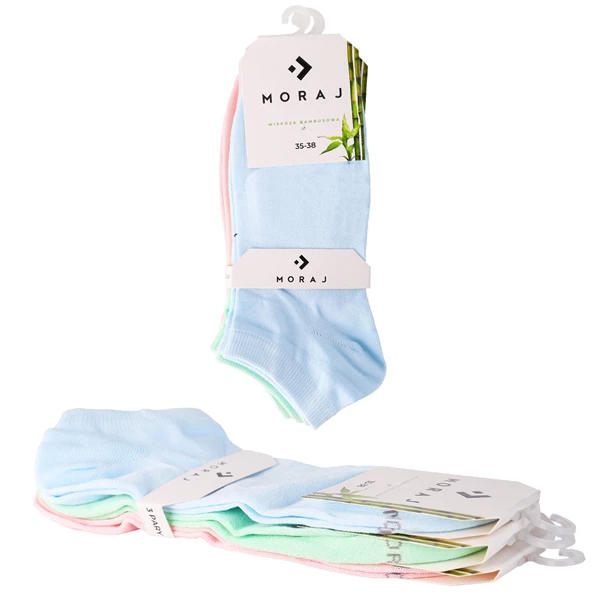 Skarpetki damskie typu stopki bamboo Line - nieuciskający ściągacz - płaski, nieuwierający szew - pastelowa / klasyczna kolorystyka Wiskoza bambusowa -cechują się wysoką higroskopijnością oraz właściwościami antybakteryjnymi. Dzięki swoim właściwością prowadzą delaminacji bakterii i pleśni nawet do 70%. Tkaniny bambusowe sprzyjają łagodzeniu podrażnień, są miłe w dotyku, a dzięki właściwościom termoregulacyjnym zapewniają wysoki komfort użytkowania