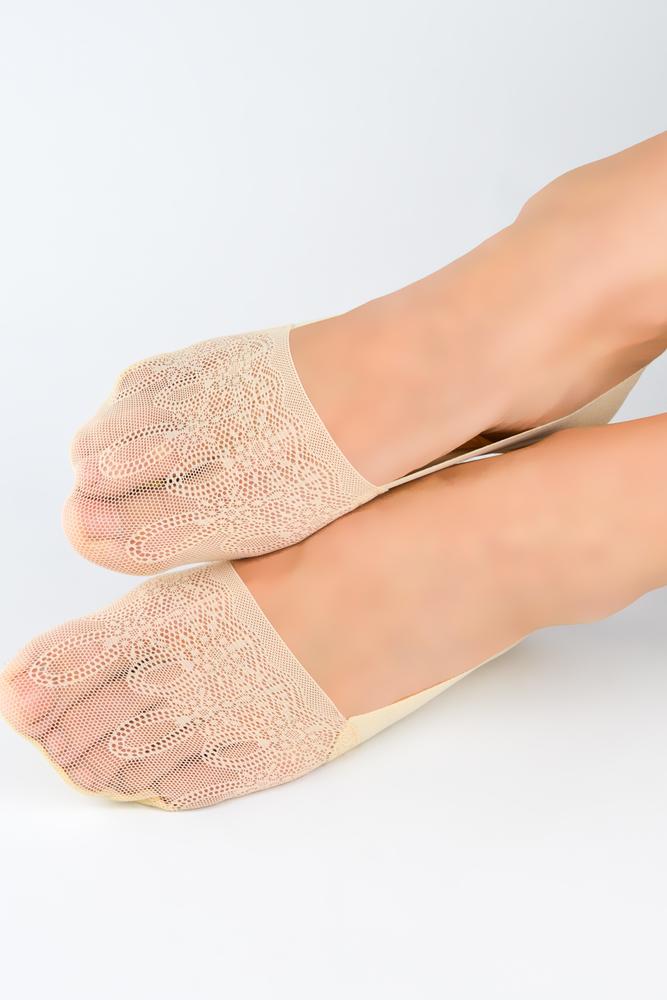 Stylowe koronkowe stopki SN049 z antypoślizgową podeszwą ABS i silikonowym paskiem na pięcie. Komfort, elegancja i idealne dopasowanie!