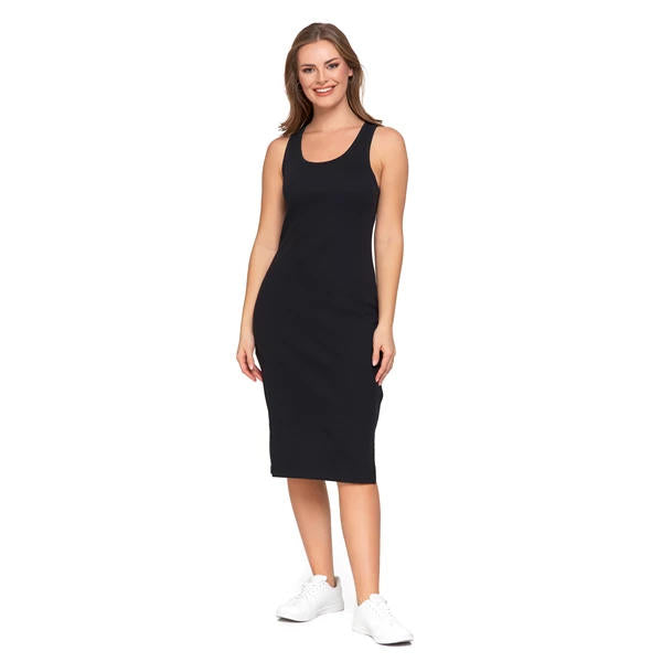 Postaw na komfort i kobiecy look w codziennym wydaniu. Nasza sukienka damska została uszyta z przyjemnej w dotyku, elastycznej dzianiny z bawełny z dodatkiem elastanu, dzięki czemu doskonale dopasowuje się do sylwetki, jednocześnie zapewniając swobodę ruchów. Fason na szerokich ramiączkach i bez rękawów sprawdzi się idealnie na cieplejsze dni, a długość midi z rozcięciami po bokach nadaje całości lekkości i nowoczesnego charakteru.