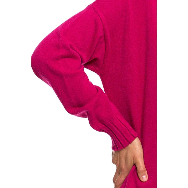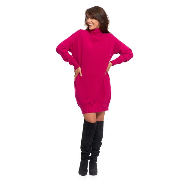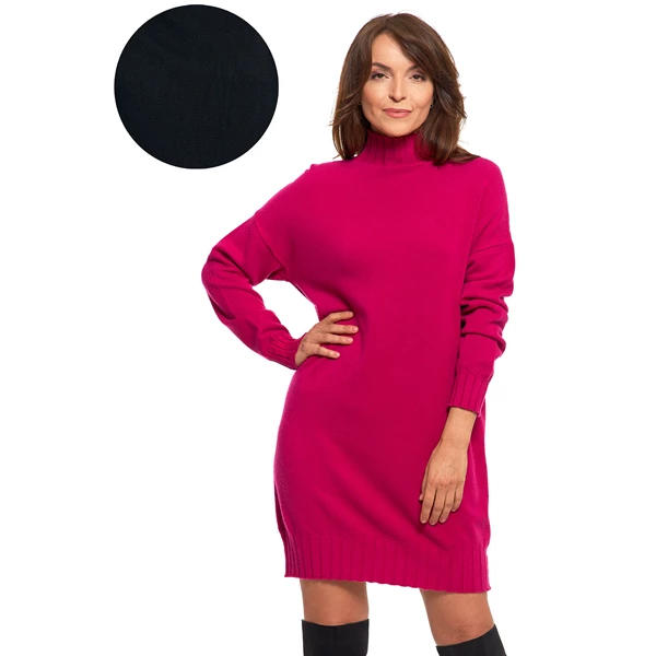 Sukienka swetrowa z golfem wykonana z wysokiej jakości, miękkiej dzianiny, delikatnie otula ciało, zapewniając przytulne ciepło i przyjemne doznania noszenia. Luźny, nieopinający sylwetki krój sprawia, że sukienka idealnie dopasowuje się do różnych typów sylwetki, a jednocześnie gwarantuje pełną swobodę ruchów. Stylowy golf dodaje jej klasycznego szyku.