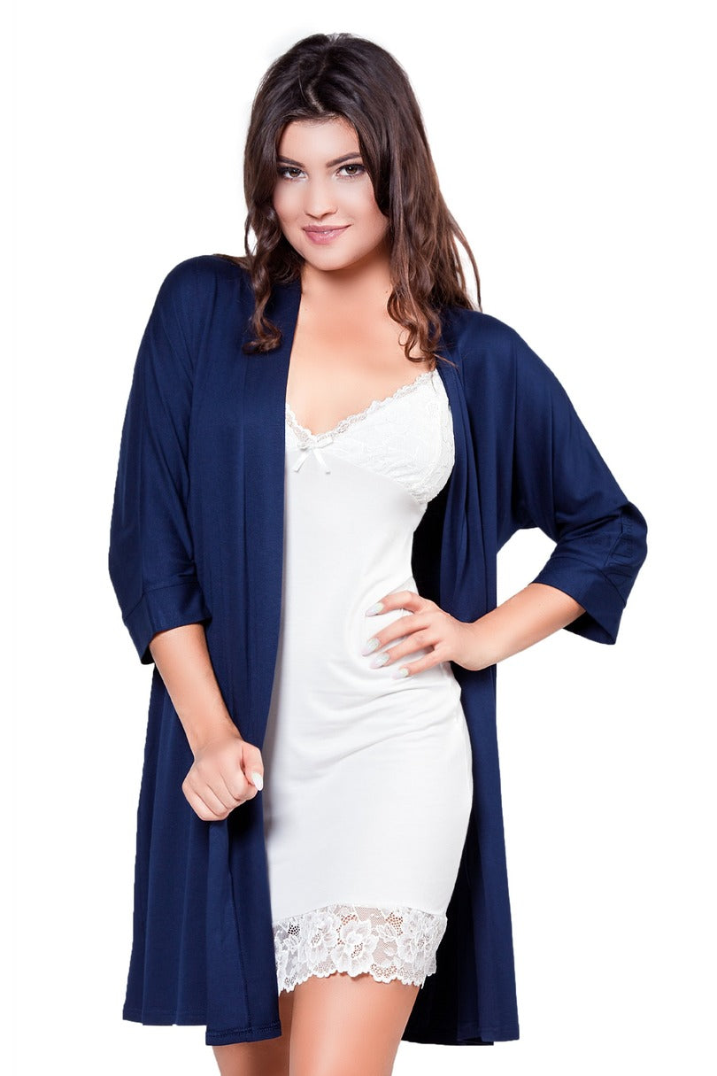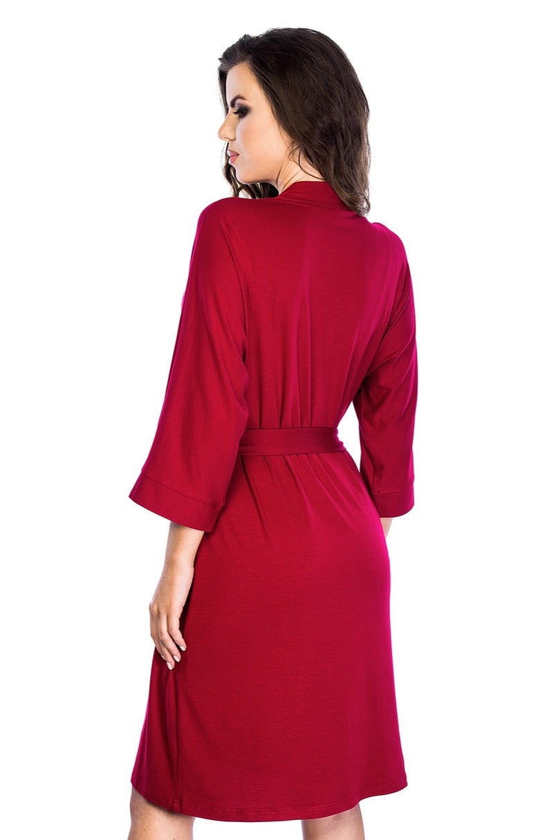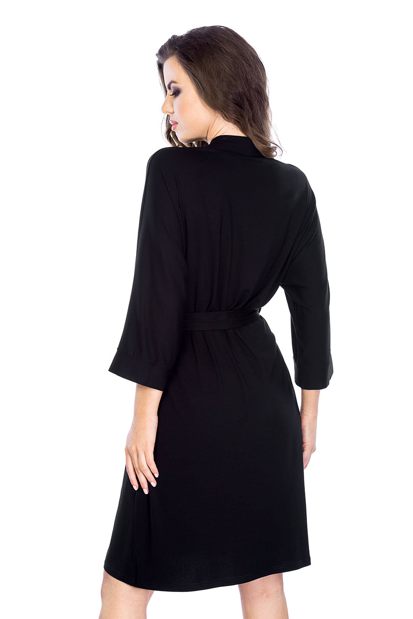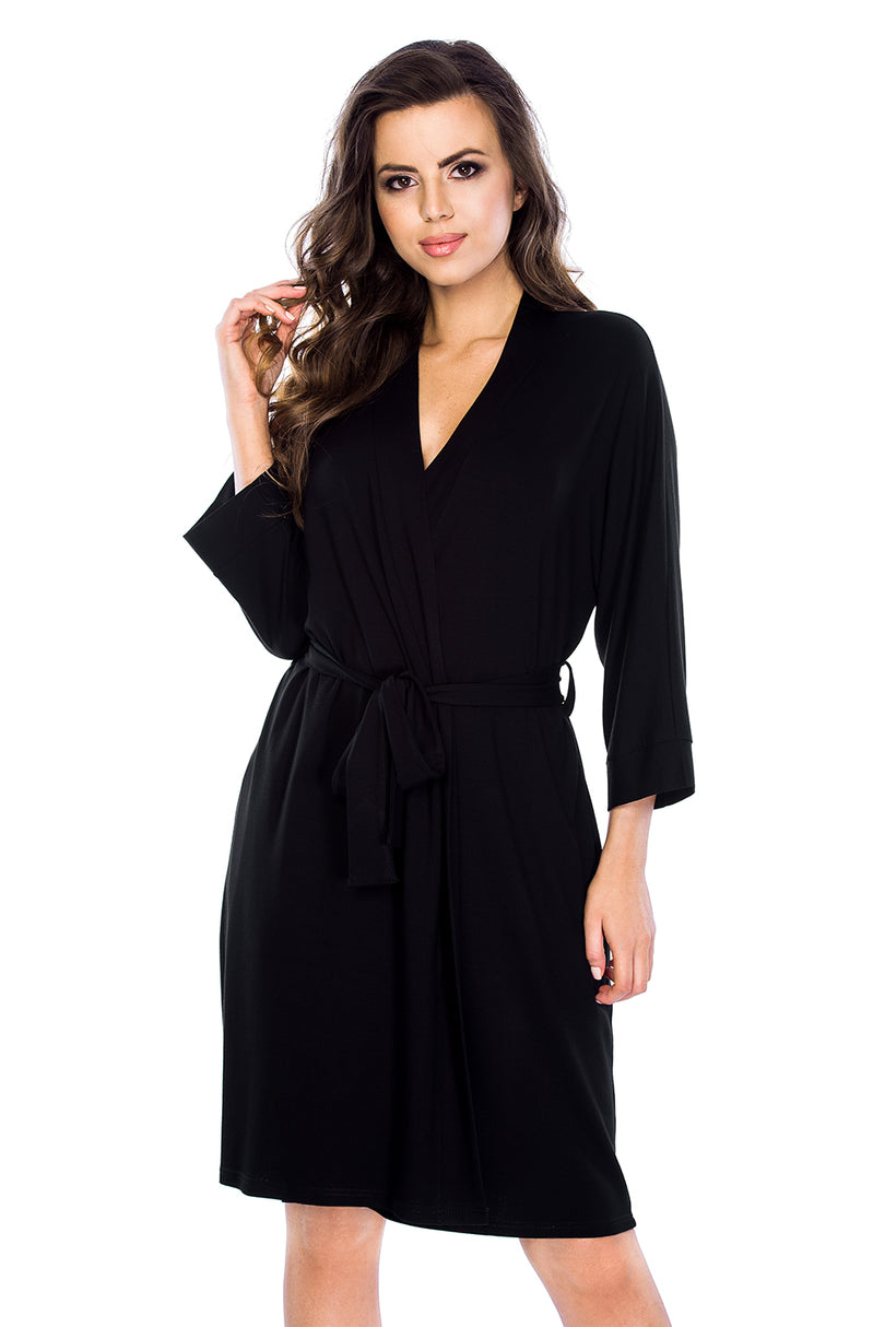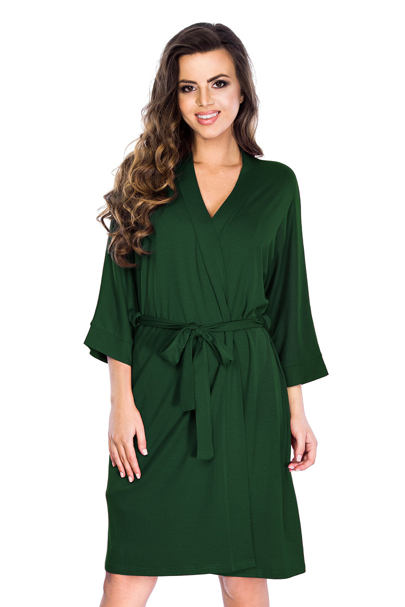 Szlafrok damski z wysokiej jakości wiskozy z dodatkiem elastanu. Wiązany w pasie, rękawy 3/4.