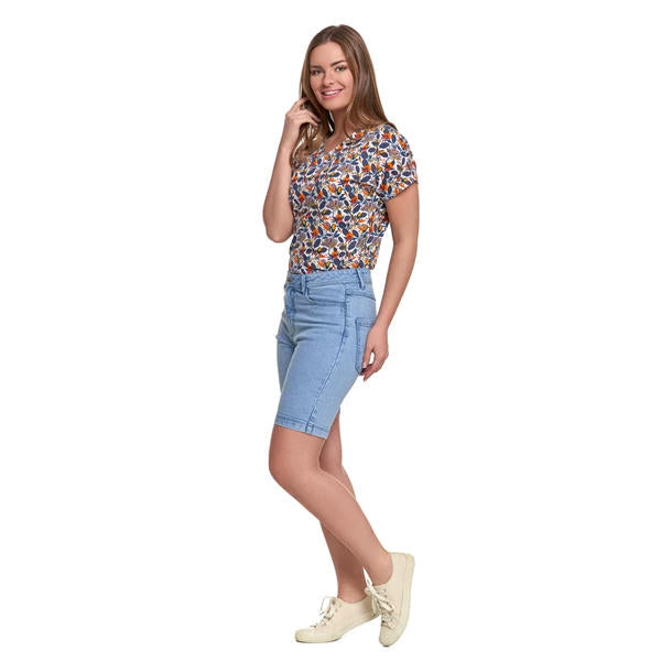 Te eleganckie szorty damskie o klasycznym kroju to idealny wybór na ciepłe dni. Wykonane z wysokiej jakości denimu, zapewniają komfort i swobodę ruchów, doskonale dopasowując się do sylwetki. Charakteryzują się wysokim stanem, co podkreśla talię, oraz prostymi nogawkami, które sięgają do połowy uda. Spodenki wyposażone są w klasyczne kieszenie z przodu i z tyłu, które dodają im funkcjonalności. Odpowiednie zarówno do codziennych stylizacji, jak i na weekendowe wypady, będą świetnym uzupełnieniem letniej garderoby.